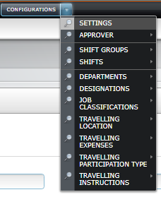 > To setup your Human Resources Management System module, go to the menu “Configurations” and you will be able to view the following menu: