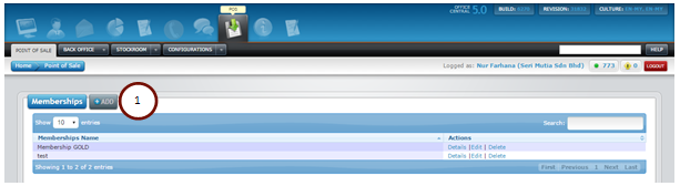 Once you’ve clicked on “Memberships”, you will see the following page: