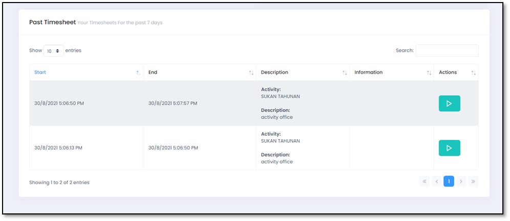 5 | Masukkan "Penerangan Lembar Masa" untuk lembaran waktu baru. |