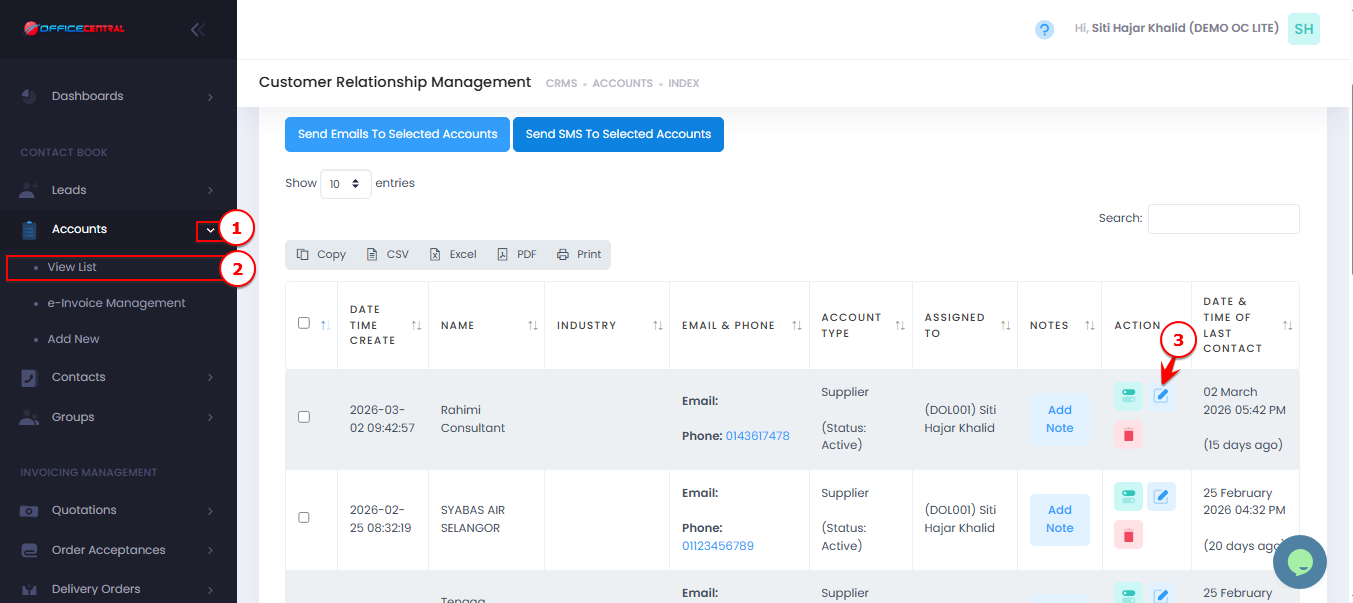 This guide explains how to reassign account to another user in OfficeCentral. Assigning accounts helps ensure the right salesperson or team member is responsible for following up the account.