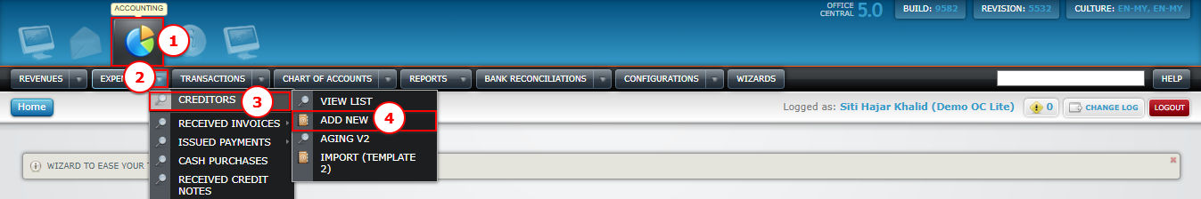 This guide explains how to create and manage supplier accounts (Creditors) in OfficeCentral Accounting.